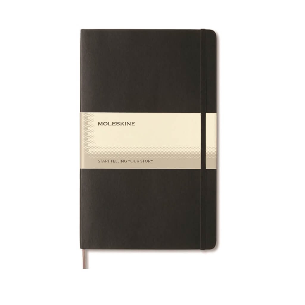 Moleskine® Large hard cover notebook, ruled, rounded corners, elastic closure